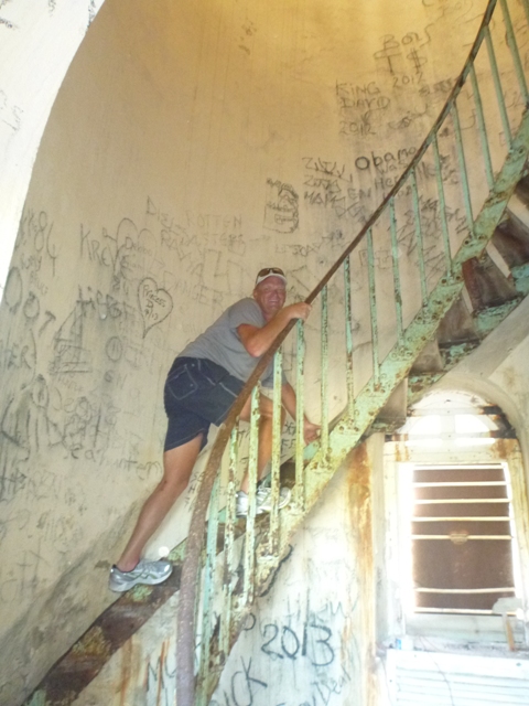 Castle Island at the bottom of Acklins Island was a treat with excellent snorkeling,a lighthouse to make our way to and leave our mark like so many other cruisers and a beach fire with marshmallows. The boys enjoyed a kayak every morning for exercise.